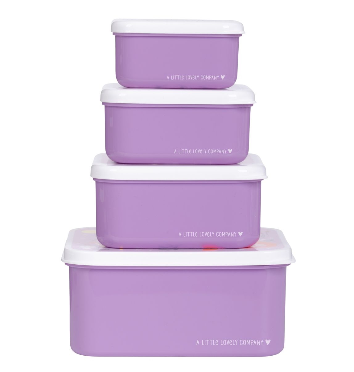 Range tes encas préférés dans les boîtes de ce set complet lunch et snack box. Emporte facilement des fruits, des crudités, des biscuits, des bonbons et des sandwichs dans ces boîtes. Ces lovely lunch et snack box sont disponibles en set de quatre tailles différentes, et sont toutes décorées. Pratique pour l’école, dans la voiture ou pour une excursion. Le set lunch et snack box est fabriqué en polyéthylène. Le matériau utilisé ne convient pas au lave-vaisselle, ni au micro-ondes. Nous vous conseillons également de nettoyer toutes les pièces du set à l’eau chaude savonneuse avant utilisation.